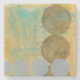 Dark brown and grey circles populate this work by Jennifer Goldberger, set over an orange and blue background. Grey Numbers are also printed on the background. An enjoyably abstract work, order your copy today!