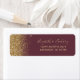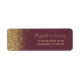 Le bord gauche de cette élégante étiquette d'adresse de retour mariage moderne présente une conception de parties scintillant en faux or. Le texte personnalisable combine écriture manuscrite couleur or pâle, cuivre et polices italiques sur un arrière - plan bordeaux foncé.