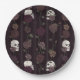 Dark Burgundy Gothic Skull & Rose Stripes Paper Plate