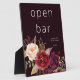 Welcome your guests to the bar with this peonies pink and burgundy marsala floral tabletop plaque frame open bar sign. Don't worry about grabbing an easel or a frame. This sign is ready to go. Use it for multiple events as well. Available with a black, white, burgundy, dark burgundy (red), and pink background.