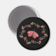 Keep all your important memos, pictures and reminders safe on your fridge with this beautiful magnet. A gorgeous pink butterfly is surrounded by pink and orange flowers with green and orange greenery. Done on a black background this magnet is sure to pop with colour.