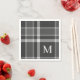 Dark Charcoal Grey Tartan Plaid with Monogram Napkin