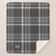 Dark Charcoal Grey Tartan Plaid with Monogram Sherpa Blanket
