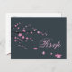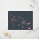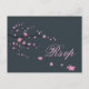 Dark cherry blossom wedding RSVP postcards with customizable text printed on dark background