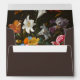 Inner envelope boasts the beauty of a Dutch Master painted Still Life. the floral bouquet has lilies, roses, and many blooms. The outside of the envelope is the colour of rich chocolate fudge.