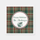 Custom personalized paper napkins with a traditional Christmas plaid pattern in dark green, maroon and gold. Choose from two sizes. Matching paper party plates available.