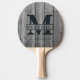 Dark Clean Gray Wood Monogram & Name Overlay Ping Pong Paddle