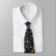 A vibrant tulip floral pattern featuring pink, yellow, purple, blue, and orange tulips with rich green leaves on a dark background. Perfect for elegant and modern floral neck ties.