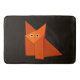 Origami fox bath mat with a geometric illustration of a cute origami fox looking at you wondering why you are looking at it, over dark brown background. This cute fox illustration will make a great gift for someone who loves foxes and origami and paper crafts. This funny cartoon fox was drawn looking at an origami I made. Looking at it I just saw it in ints cuteness, only eyes were missing so I made them from paper, too, and glued them to the fox.