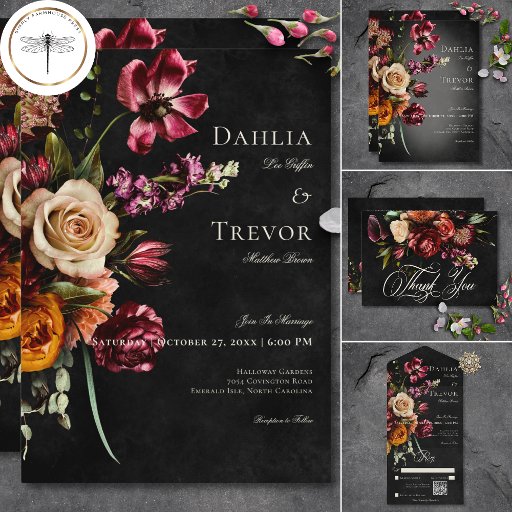 Dark Elegant Blur Autumn Floral Wedding Save The Date