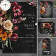 Step into a realm of exquisite elegance with our floral dark and moody wedding save the date card. Designed to captivate the senses, this design boasts a striking black background adorned with a breathtaking burst of autumnal florals in deep burgundy, burnt orange, creamy hues, and touches of luxurious gold, complemented by lush olive green foliage. The creamy text delicately floats upon a soft blur of light, adding a touch of romance to the overall allure. Embrace the opulence of the season and set the tone for your special day with this stunning design, sure to leave a lasting impression on your guests. Created by Simply Farmhouse Press.