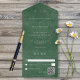 AVAILABLE WITH OR WITHOUT A QR CODE OR WITH OR WITHOUT DINNER SELECTION OPTIONS. This design features a dark emerald green and silver marbleized background with the bride and groom's monogram. Created by Simply Farmhouse Press.