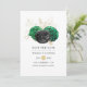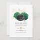 Elegant green, black and faux gold foil floral wedding save the date card customizable to your event specifics.