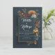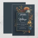 Set a dramatic and romantic tone with this Dark Floral Frame Wedding Invitation, featuring a moody deep green background with an elegant gold border and a lush arrangement of fall-inspired florals. The bouquet of golden yellow, rust orange, blush, and dusty blue flowers brings a seasonal richness and natural elegance that makes this design perfect for autumn weddings or sophisticated events year-round.