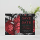 Dark Floral Red Silver Wedding Save the Date Invitation