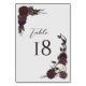 Printed on both front and back for visibility from every angle, the design sits against a very soft light gray background that enhances the deep burgundy florals and intricate skull details. Perfect for gothic weddings, dark romantic receptions, Halloween weddings, and alternative bridal celebrations, this table number adds dramatic sophistication to your reception décor.