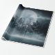 Dark forest. Gloomy dark scene with trees, big moo Wrapping Paper