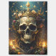 This artwork features an ornate skull adorned with a regal crown, intricately entwined with lush vines and vibrant flowers. Flickering candles add a mystical glow, casting dynamic shadows that bring the scene to life. All of this is set against a serene forest backdrop, creating a striking balance between beauty and mystery.