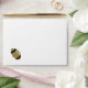 Stylish white football themed envelope, with a solid black inside and a golden tan coloured back flap. Graphics of a dark gold and black football, decorates the left front corner of the envelope. Return address done in black text, on the back flap, is ready to personalize with your information. Great finishing touch to our matching football themed couple's wedding shower invitations.