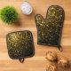 Dark gold faux glitter sparkles oven mitt & pot holder set