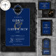 Dark Gothic Black Floral Satin Damask Blue Wedding Invitation