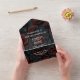 Introducing our gothic themed wedding invitation featuring a dark black and red rose floral background with white text. This invitation is perfect for couples seeking a gothic aesthetic for their special day. The highlight of this invitation is the convenient QR code, allowing guests to RSVP effortlessly using their smartphones. For traditionalists, we've included a traditional paper RSVP option as well. With the all-in-one design, guests can easily tear away the RSVP section and send it back. Additionally, we've provided space for a website and email information for RSVPs, ensuring a seamless and convenient RSVP process.