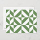Dark Grass Green Geometric Deco Cube Pattern Postcard