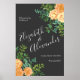 Dark Gray Peach Wedding Modern Floral Poster