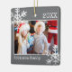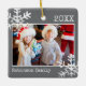 Dark Gray Photo Border White Snowflakes Holiday Ceramic Ornament