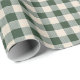 Custom-designed Christmas wrapping paper roll featuring rustic dark green and beige buffalo check design.