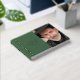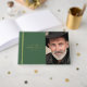 In Loving Memory, Funeral / Celebration of Life photo guestbook, with a simple, minimal, and elegant design with a soft velvety hardcover in deep green, and real foil in stripes, and text details. Ability to change "In loving memory" to "Celebrating the Life of" by using the template text box. Choose from three size options and three foil colours: gold, silver, or rose gold. Personalize it with your loved one information on the front and spine and add on the back any message you like.