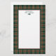 Personalized stationery with a border of a dark green, maroon, and gold Christmas plaid pattern. Ideal for holiday newsletters and thank you notes. Matching return address labels and star shaped envelope seal stickers available.