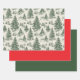 Dark Green Christmas Tree Toile Wrapping Paper Set of 3