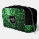 Dark green faux glitter sparkles black Monogram Dopp Kit