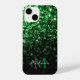 Dark green faux glitter sparkles Monogram iPhone Case