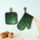 Dark green faux glitter sparkles oven mitt & pot holder set