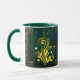 Dark Green and Semi White Colour Mug Background with Golden Design on Border Area and at Middle Glowing Flower Pattern which looks very Magical in Nature and Attractive.