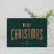 Dark Green Merry Christmas Retro Stars Flat Foil Holiday Card