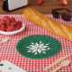 Traditional dark green plaid pattern, festive winter holidays snowflake pattern, Christmas party supplies.