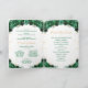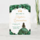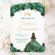 This elegant and glamourous Quinceañera program features a beautiful princess with dark hair in a dark green ball gown. The text combines handwritten script and modern sans serif fonts for a classy and sophisticated look. The floral arrangements and gold confetti create the perfect blend of rustic and chic.