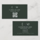 Dark Green QR Code Monogram Minimalist Modern Business Card