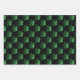 Dark Green sparkly Shamrock pattern on black Wrapping Paper Sheet