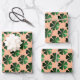 Dark Green sparkly Shamrock pattern on peach Wrapping Paper Sheet