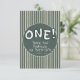 Dark Green Stripes 1st Birthday Thank You Card