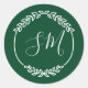 Dark Green White Leaf Wreath Monogram Wedding Classic Round Sticker