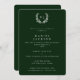 Dark Green/White Monogram Laurel Wreath Graduation Invitation
