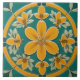 Dark Green & Yellow Flower Floral Mediterranean Tile