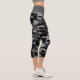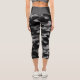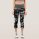 Dark Grey Black And White Camouflage Pattern Capri Leggings