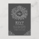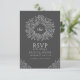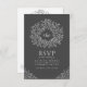 Dark grey drawn leaf monogram RSVP wedding QR Code Enclosure Card