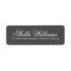 Elegant return address labels with your name in an elegant calligraphy script font and the address below on a PRINTED dark grey linen background.